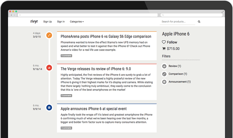 Filter your stream to see only reviews, price changes, rumors, and more about your favorite products.